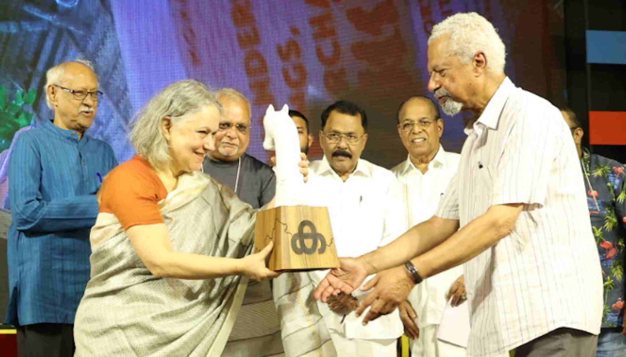 Nobel Laureate Abdulrazak Gurnah presented the award to Dr Mohan at the valedictory ceremony of the four-day MBIFL 2023.