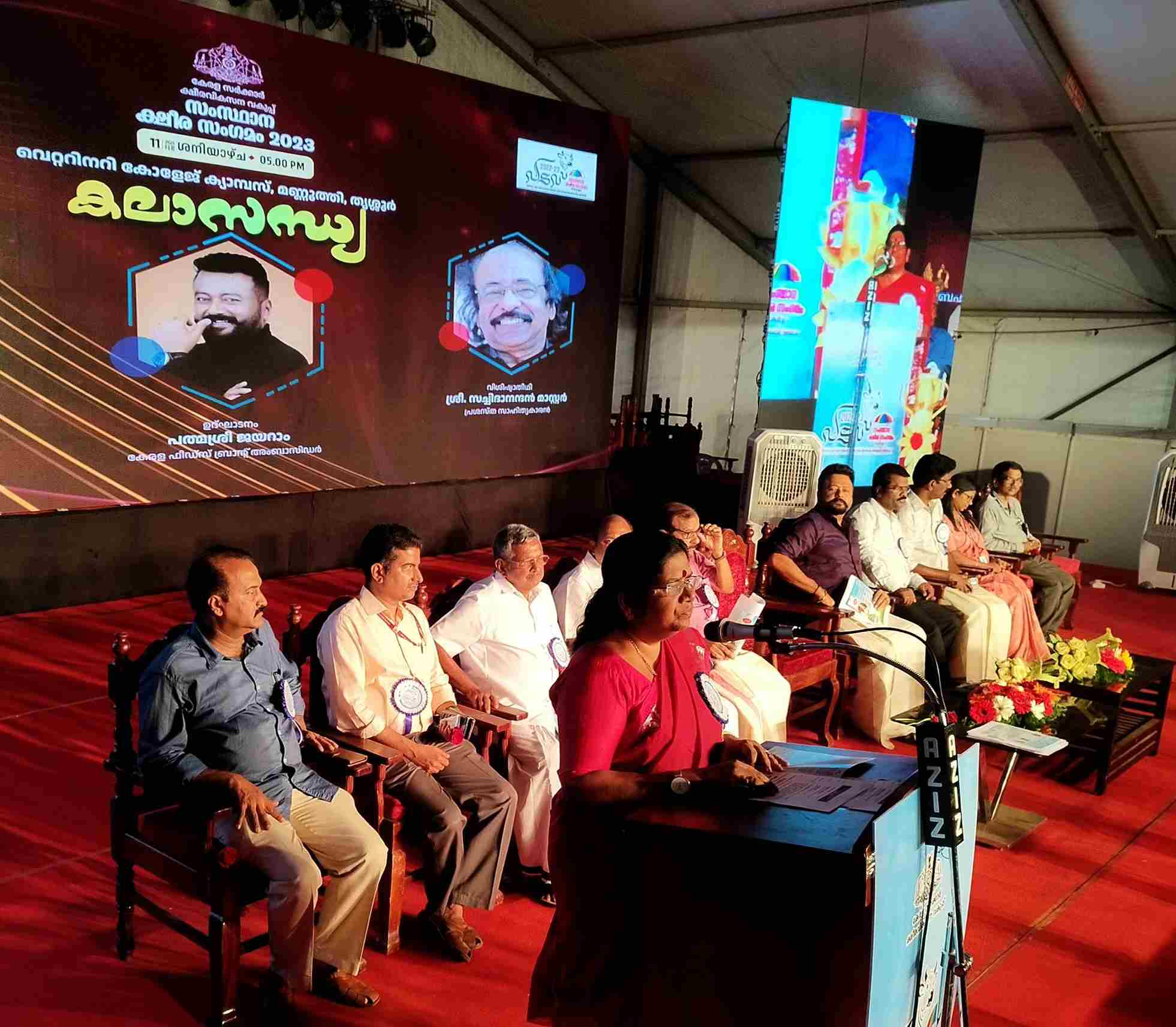 The ‘Kala Sandhya’ celebrations this evening were part of the February 10-15 ‘Padavu 2023’ gathering of dairy farmers from across the state. The six-day event, which the Dairy Development Ministry is organising at the Veterinary College in Mannuthy, features workshops, seminars, award ceremonies and cultural evenings, among others. The cultural session, which featured a Jayaram-led percussion ensemble titled ‘Vadya Vismayam’ besides other stage programmes, was organized by KFL headquartered in Kallettumkara near Irinjalakuda of this district.