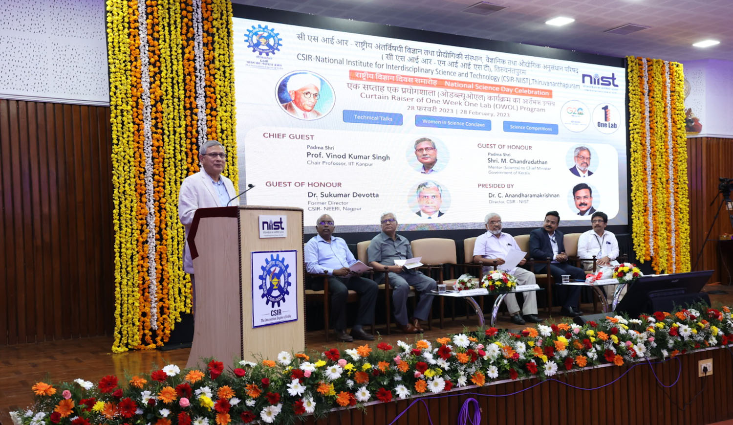 ദേശീയ ശാസ്ത്രദിനത്തിന്റെ ഭാഗമായി എന്ഐഐഎസ്ടി കാമ്പസില് നടന്ന ചടങ്ങില് വണ് വീക്ക് വണ് ലാബ് പരിപാടിയുടെ കര്ട്ടന് റൈസര് ഐഐടി കാണ്പൂര് ചെയര് പ്രൊഫസര് പ്രൊഫ.വിനോദ്കുമാര് സിങ് ഉദ്ഘാടനം ചെയ്തു. അധ്യാപനത്തിലും ഗവേഷണത്തിലും നൂതനത്വം സ്വീകരിക്കുന്നതിനൊപ്പം ഗുണനിലവാരമുള്ള ഗവേഷണത്തില് ശ്രദ്ധ കേന്ദ്രീകരിക്കണമെന്ന് വിനോദ്കുമാര് സിങ് പറഞ്ഞു. സുസ്ഥിരവികസനം സാധ്യമാകണമെങ്കില് സാങ്കേതികവിദ്യയില് ഉപയോഗിക്കുന്ന ശാസ്ത്രത്തില് കൂടുതല് ശക്തരാകണം. ശാസ്ത്ര-സാങ്കേതിക രംഗത്തെ മികവില് സദ്ഭരണം, അടിസ്ഥാന സൗകര്യങ്ങള്, മാനേജ്മെന്റ്, നേതൃത്വം തുടങ്ങിയവ വളരെ പ്രധാനമാണ്. ഈ മേഖലകള് ശക്തിപ്പെടുത്തിയാല് കൂടുതല് നേട്ടങ്ങള് കൈവരിക്കാനാകുമെന്നും അദ്ദേഹം കൂട്ടിച്ചേര്ത്തു.