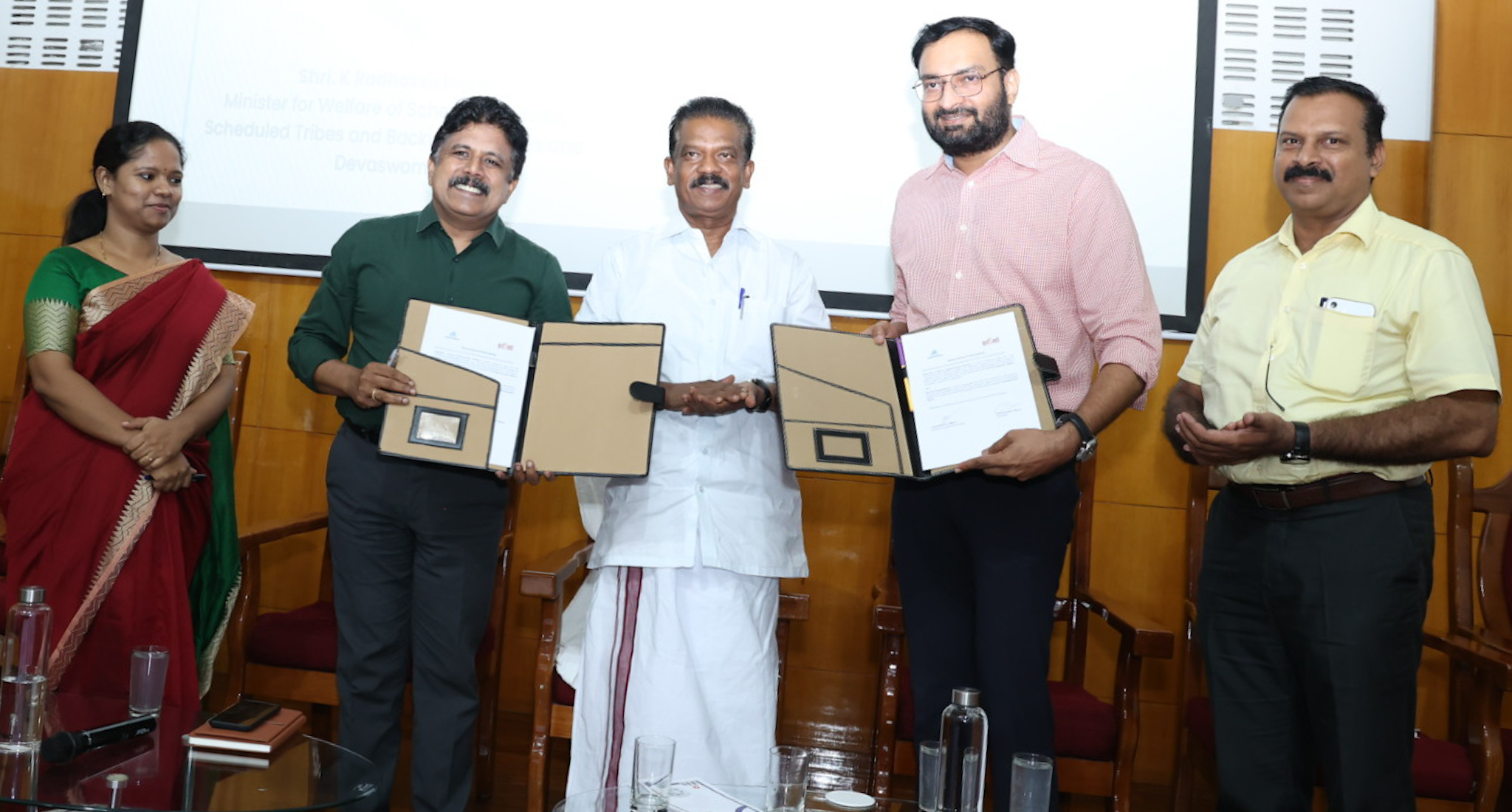 The MoU was signed between KSUM CEO Shri Anoop Ambika and Shri Prasanth Nair, Special Secretary, SC/ST and Backward Classes Development, in the presence of Shri K Radhakrishnan, Minister for Welfare of Scheduled Castes, Scheduled Tribes and Backward Classes and Devaswoms, at the Institute of Management in Government (IMG) here.