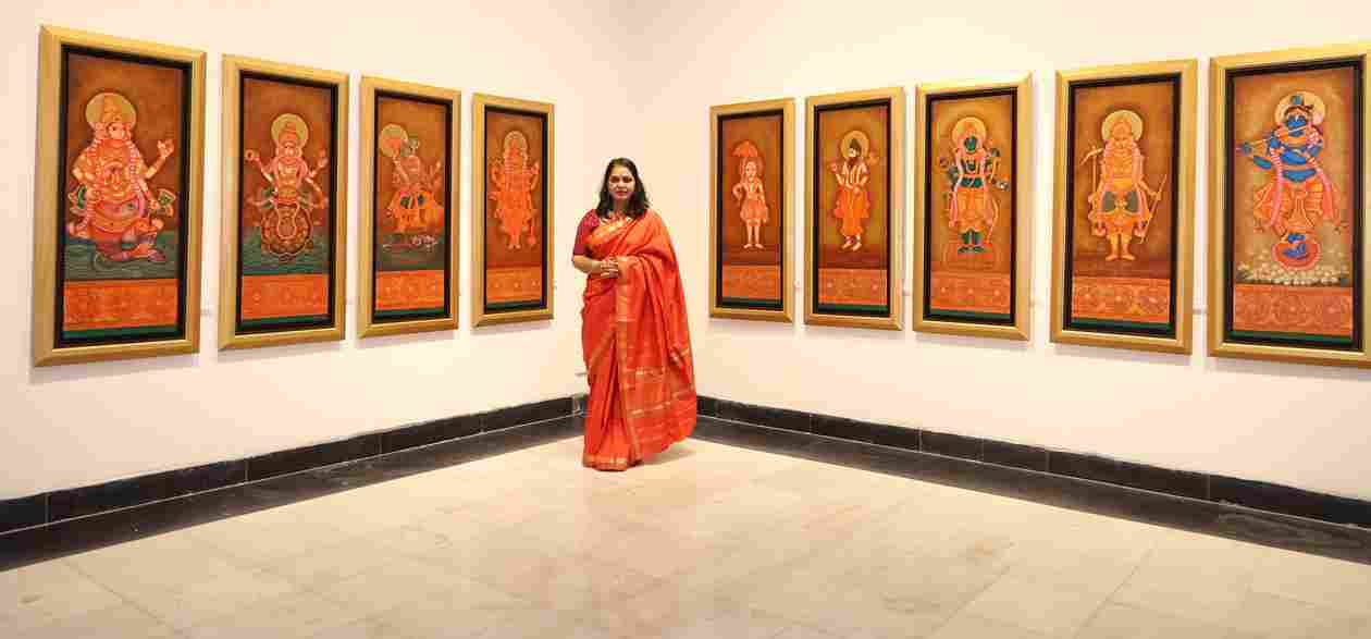 കേരളീയ ചുമര്ചിത്ര ചാരുതയില് അര്പ്പിത റെഡ്ഡിയുടെ 'വിശ്വാത്മ' ന്യൂഡല്ഹി ബിക്കാനീര് ഹൗസിലെ ചിത്രപ്രദര്ശനം 25 വരെ