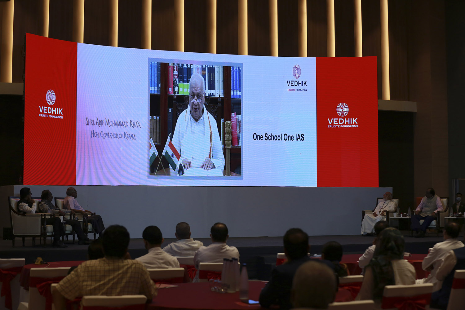 Photo Caption: Vedhik_Governor Pic 1: Hon Kerala Governor Shri Arif Mohammad Khan inaugurating One School One IAS initiative of Vedhik Erudite Foundation at a programme held at Grand Hyatt Kochi Bolgatty on 16 Jan 2021.