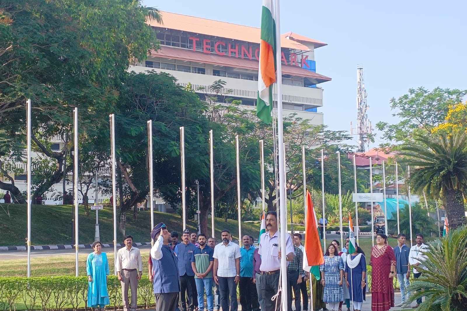 Unfurling the national flag at Phase-I campus, Col Sanjeev Nair (Retd) said it is a matter of pride for Technopark to contribute significantly towards the country’s vibrant technological initiatives as it forges ahead to become a developed nation.
