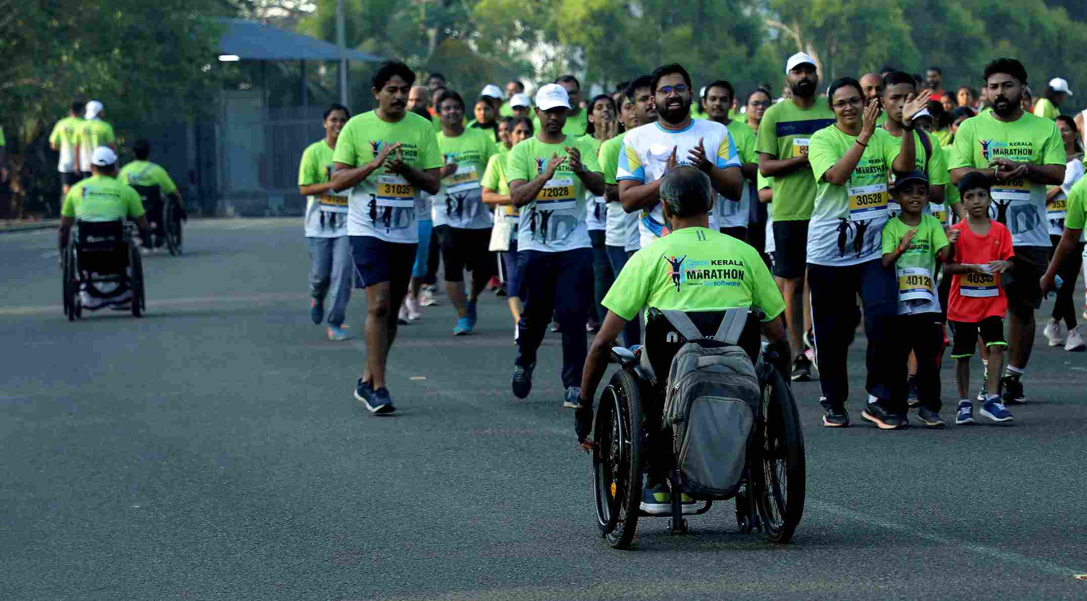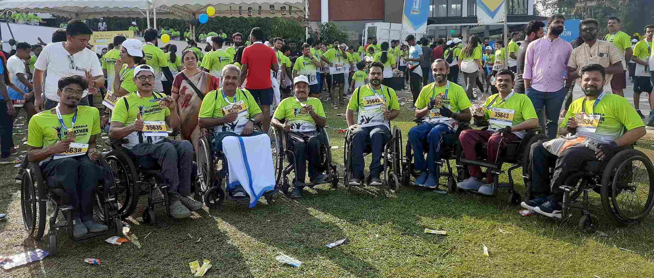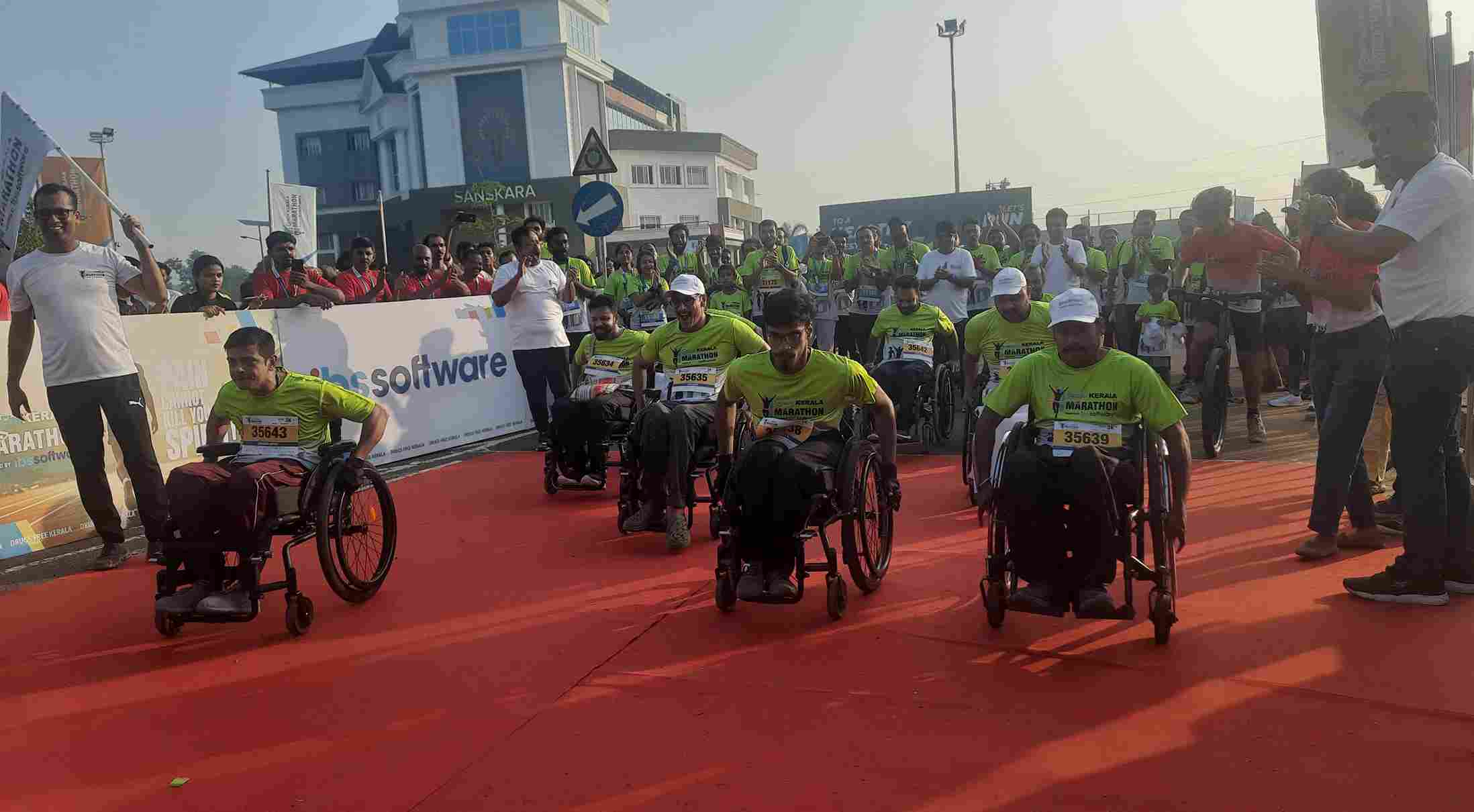 കൊച്ചി: ഇന്ഫോപാര്ക്ക് ക്യാമ്പസില് നടന്ന ഐടി കമ്പനികളുടെ കൂട്ടായ്മയായ ജി-ടെക് മാരത്തോണില് ഫ്ളാഗ് ഓഫിന് കാത്തു നില്ക്കുന്ന പതിനൊന്ന് വീല്ച്ചെയര് അത്ലീറ്റുകള്. കൊടി താഴുമ്പോള് അവരില് കണ്ടത് ഒന്നാമതെത്താനുള്ള വീറോ വാശിയോ ആയിരുന്നില്ല, മറിച്ച് ഒന്നിച്ച് ലക്ഷ്യത്തിലേക്കെത്താനുള്ള സംഘബോധമായിരുന്നു.