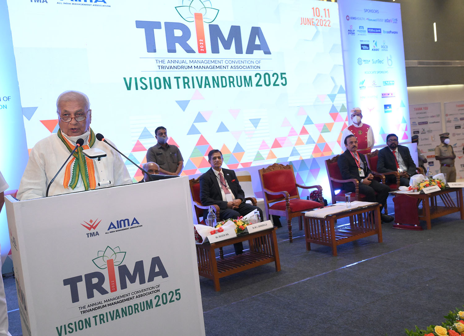 തിരുവനന്തപുരം: കൂടുതല് വളര്ച്ചയിലേക്കുള്ള ഇന്ത്യയുടെ പ്രയാണത്തില് നഗരങ്ങളുടെ സുസ്ഥിരവും സമഗ്രവുമായ വികസനം ഏറെ പ്രധാനമാണെന്ന് ഗവര്ണര് ആരിഫ് മുഹമ്മദ് ഖാന്. വിഷന് ട്രിവാന്ഡ്രം 2025 എന്ന പ്രമേയത്തില് ട്രിവാന്ഡ്രം മാനേജ്മെന്റ് അസോസിയേഷന് (ടിഎംഎ) സംഘടിപ്പിക്കുന്ന ദ്വിദിന വാര്ഷിക മാനേജ്മെന്റ് കണ്വെന്ഷന് 'ട്രിമ 2022' ഉദ്ഘാടനം ചെയ്യുകയായിരുന്നു അദ്ദേഹം.
