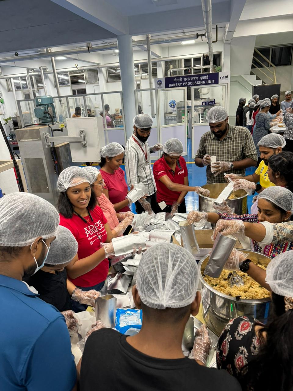 The staff and students of the premier autonomous research institute under the Ministry of Science and Technology, Government of India contributed to disaster relief by actively preparing food products in the in-house food pilot plant facility as part of their social responsibility.