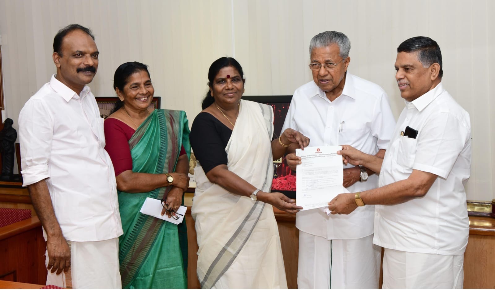 Minister for Dairy Development and Animal Husbandry Smt J Chinchurani, Milma Chairman Shri K S Mani, Thiruvananthapuram Regional Cooperative Milk Producers Union (TRCMPU) Chairman Smt Mani Viswanadh and Ernakulam Regional Milk Producers Union (ERCMPU) Chairman Shri M T Jayan handed over the cheque for the amount to Chief Minister Shri Pinarayi Vijayan at his chamber.