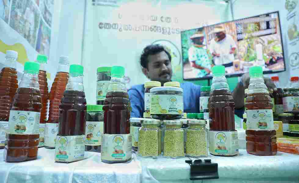 Kochi, June 16: Sweetening the proceedings at Kerala’s MSME-centric B2B conclave Vyapar 2022, a variety of honey products, including natural honey and value-added products, from apiculturists from across the state, are on display.
