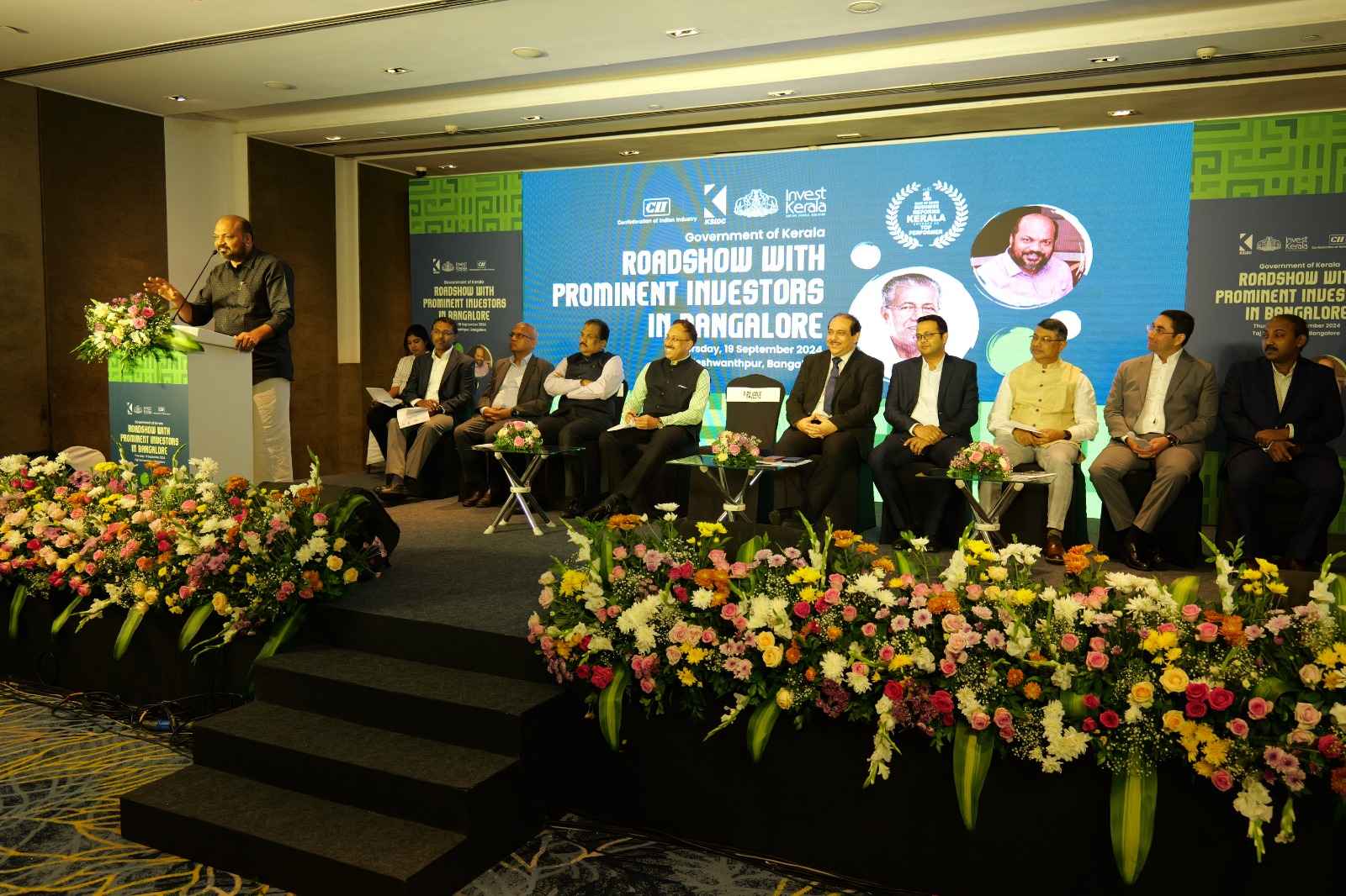 The event in Bengaluru was part of a series of Kerala Industrial Roadshows planned by the state government to attract investments in the areas of aerospace, artificial intelligence, defence, robotics, biotechnology, electric vehicles, food processing, information technology, logistics, maritime business, ship building, medical instruments and equipment, packaging, research and development, waste treatment, and renewable energy sources.