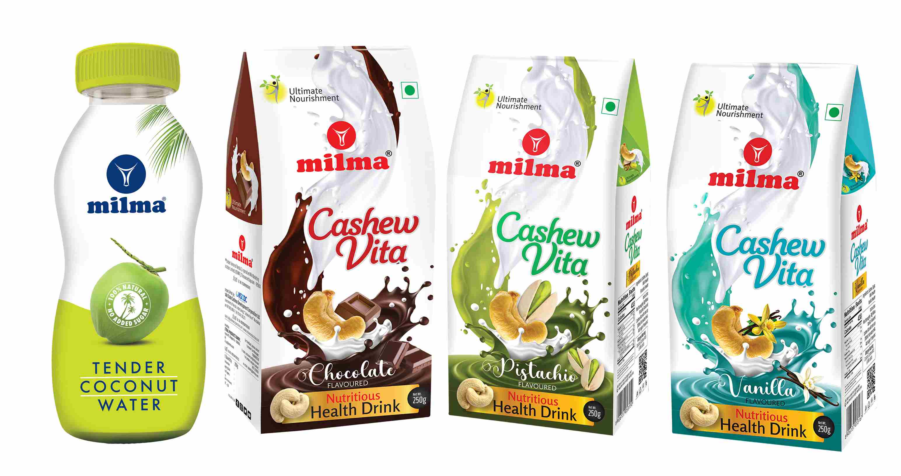 Cashew Vita Powder, is a cashew-based health drink introduced by Milma in association with Kerala State Cashew Development Corporation Ltd. The product, developed at the Central Food Technological Research Institute, Mysuru, and is manufactured using the latest technology. Cashew Vita can be stored for six months and can be consumed by mixing with milk. The product comes in three flavours—Chocolate, Pista and Vanilla in packets of 250 gm and is priced at Rs 460, Rs 325 and Rs 260 respectively.