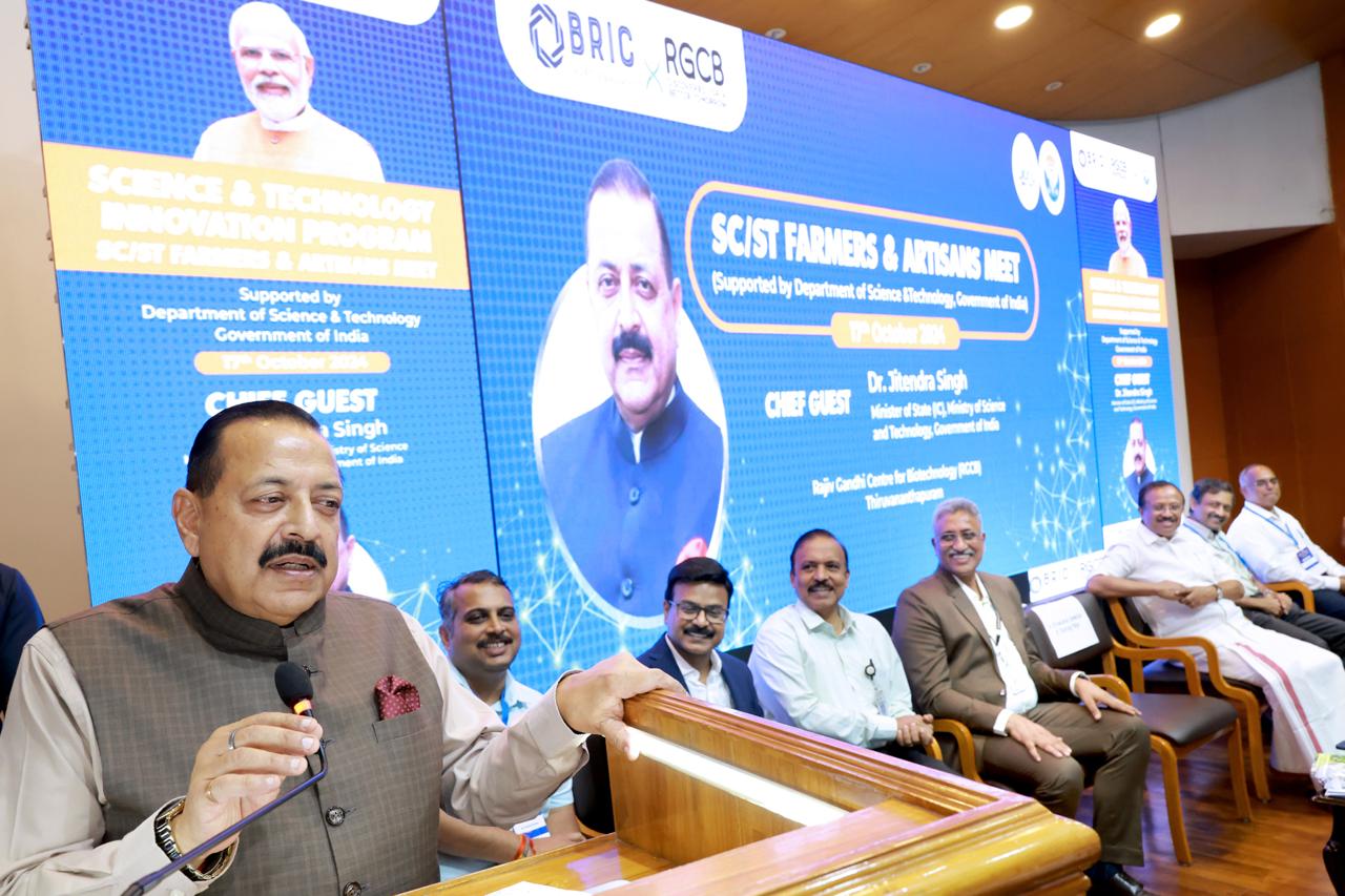 തിരുവനന്തപുരം:സമൂഹത്തിലെ എല്ലാവിഭാഗക്കാര്ക്കും പ്രയോജനം ലഭിക്കുന്ന വിധത്തില് ശാസ്ത്ര സ്ഥാപനങ്ങളിലെ ഗവേഷണങ്ങളുടെ മൂല്യം ഉയര്ത്താനുള്ള സമയമാണിതെന്ന് കേന്ദ്ര ശാസ്ത്ര സാങ്കേതിക സഹമന്ത്രി ഡോ. ജിതേന്ദ്ര സിങ് പറഞ്ഞു. ബ്രിക്-ആര്ജിസിബി കാമ്പസില് നടന്ന 'എസ് സി/എസ് ടി ഫാര്മേഴ്സ് ആന്ഡ് ആര്ട്ടിസാന്സ് മീറ്റി' ല് സംസാരിക്കുകയായിരുന്നു അദ്ദേഹം.