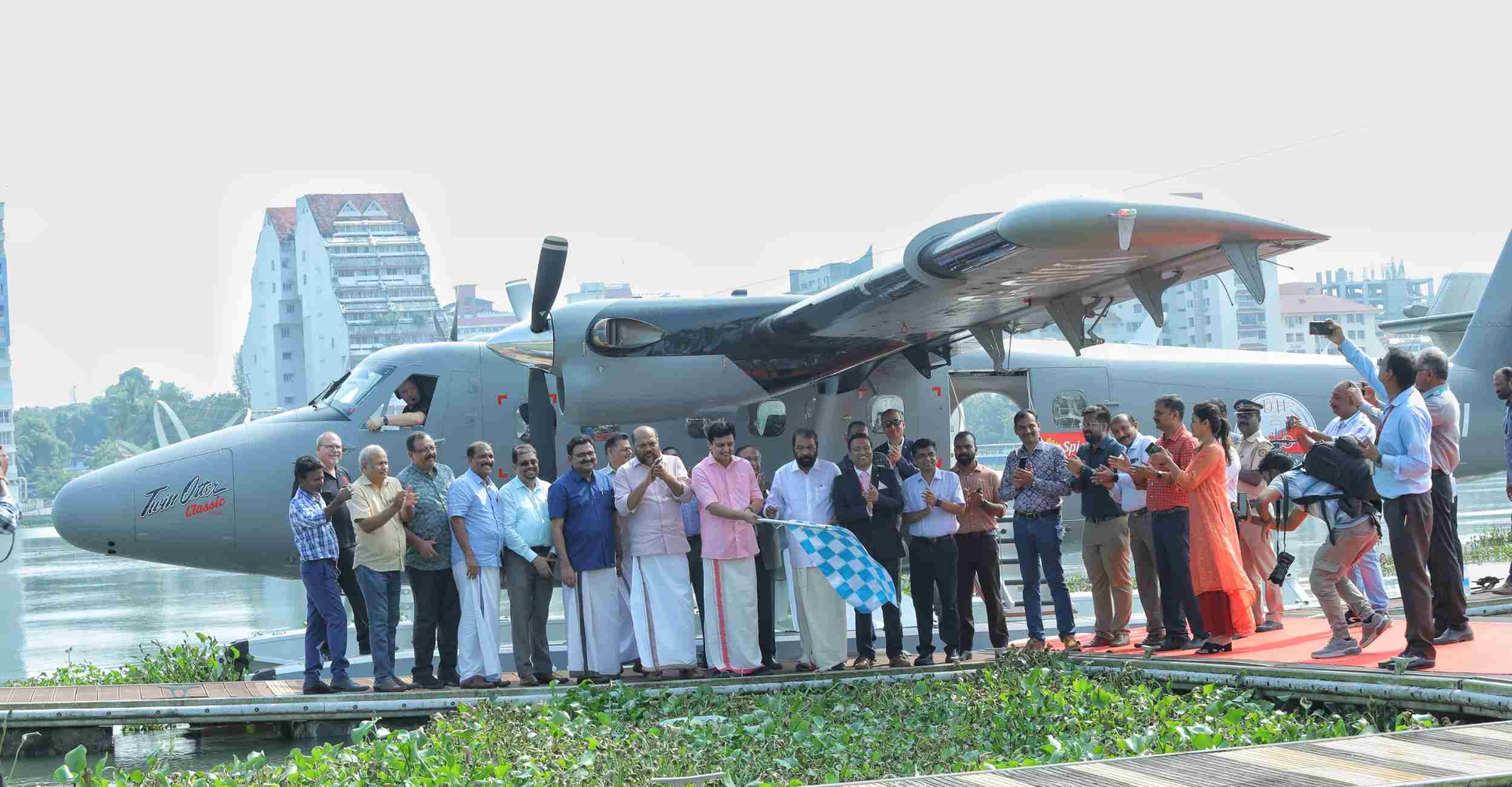 Tourism and Public Works Minister Shri PA Mohamed Riyas flagged off the amphibious aircraft from the Bolgatty Palace Waterdrom in the port city.