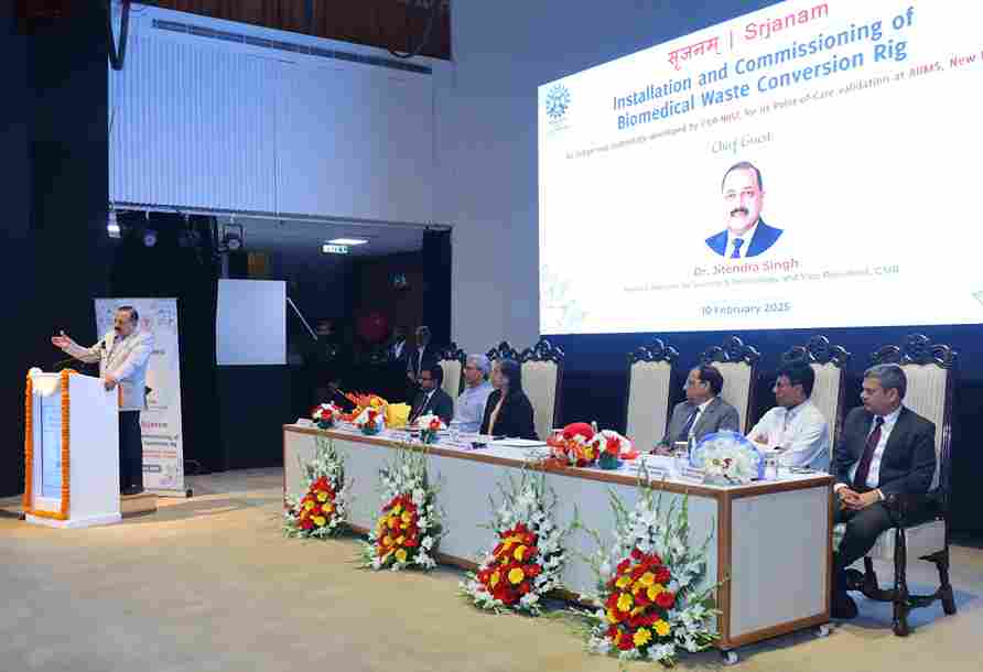 नई दिल्ली,10 फरवरी: केंद्रीय विज्ञान एवं प्रौद्योगिकी मंत्री डॉ. जितेंद्र सिंह ने आज अखिल भारतीय आयुर्विज्ञान संस्थान (एम्स) में एक स्वचालित बायोमेडिकल अपशिष्ट रूपांतरण रिग का शुभारंभ किया, जो रक्त, मूत्र, थूक और प्रयोगशाला के डिस्पोजेबल जैसे रोगजनक बायोमेडिकल कचरे को कीटाणुरहित कर उन्हें मिट्टी में मिलाने वाले पदार्थों में बदल सकता है।