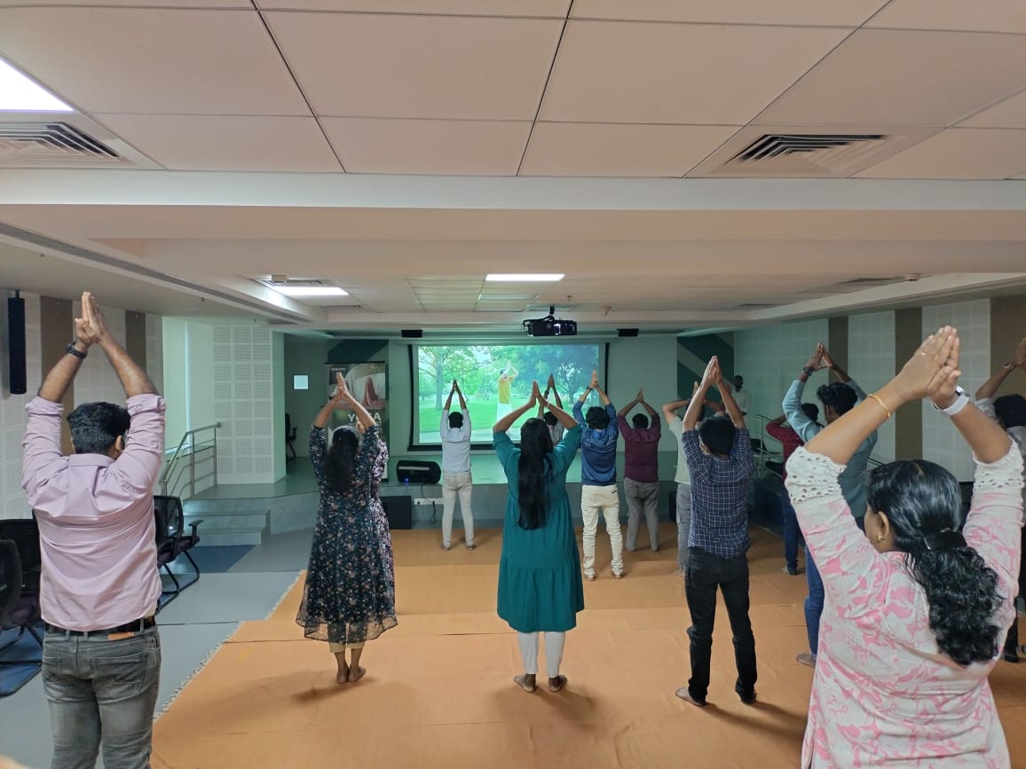 The session featured yoga exercises for various parts of the body, besides allied meditation techniques for inner mental well-being. The employees were trained to adopt postures such as Yoga Namaskar and Simha Kriya besides meditation to reduce mental stress.