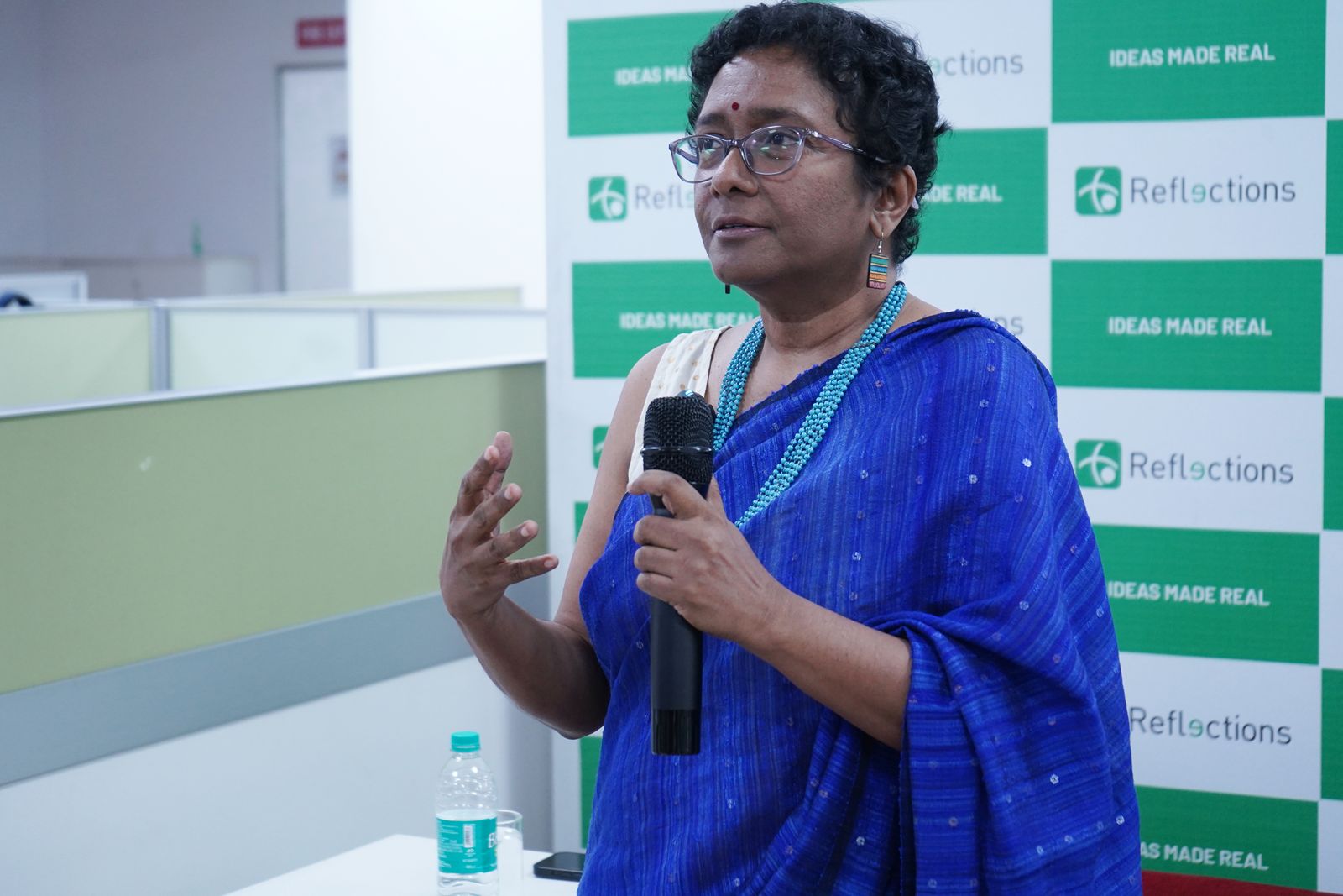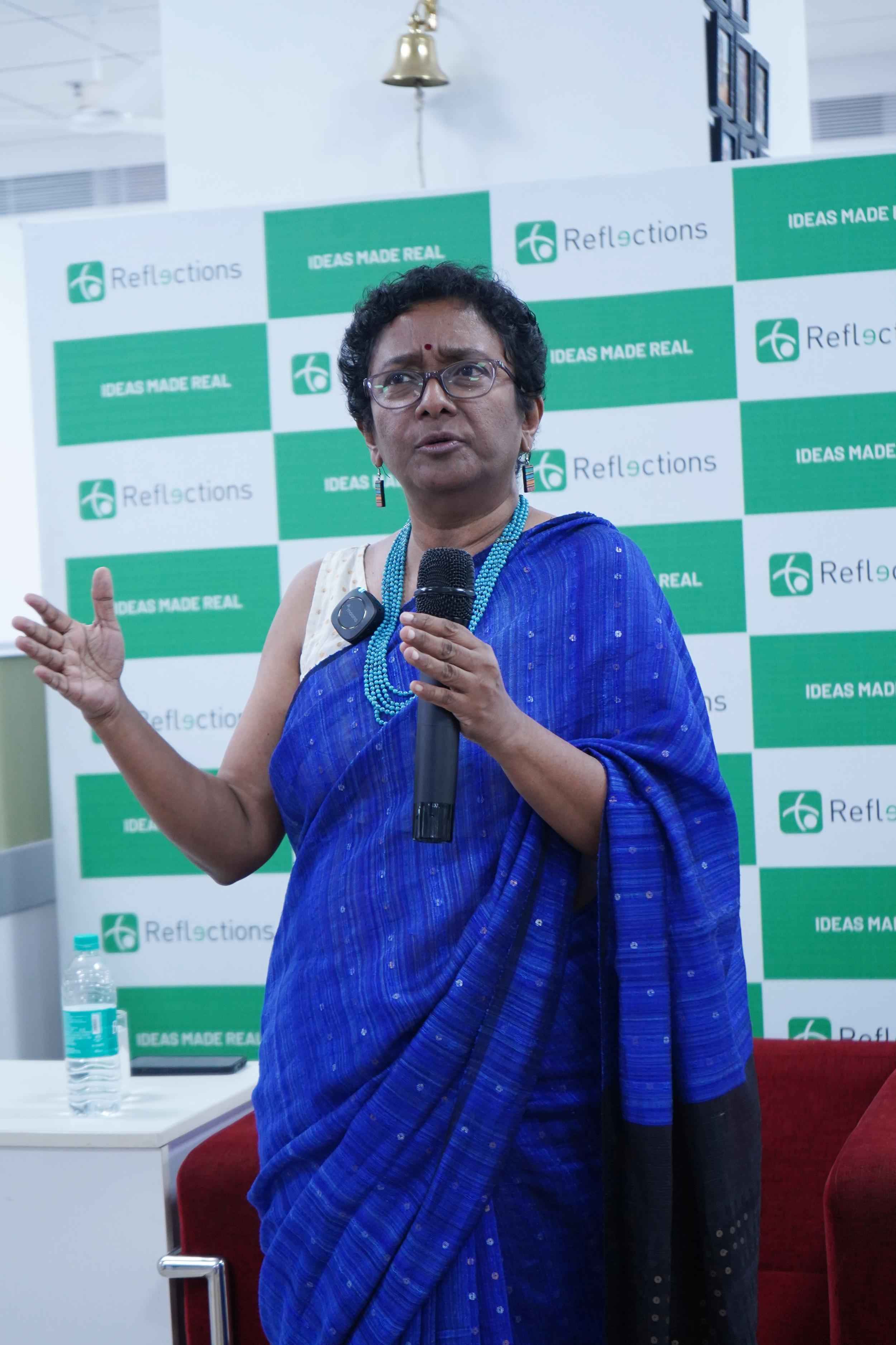 നാഷണല് റൂറല് ലൈവ്ലിഹുഡ് മിഷന്, മിനിസ്ട്രി ഓഫ് പഞ്ചായത്തിരാജ്, നാഷണല് ഇന്സ്റ്റിറ്റ്യൂട്ട് ഓഫ് ഫാഷന് ടെക്നോളജി എന്നിവിടങ്ങളിലെ തന്റെ ഔദ്യോഗിക അനുഭവങ്ങളെക്കുറിച്ചും അവര് സംസാരിച്ചു.