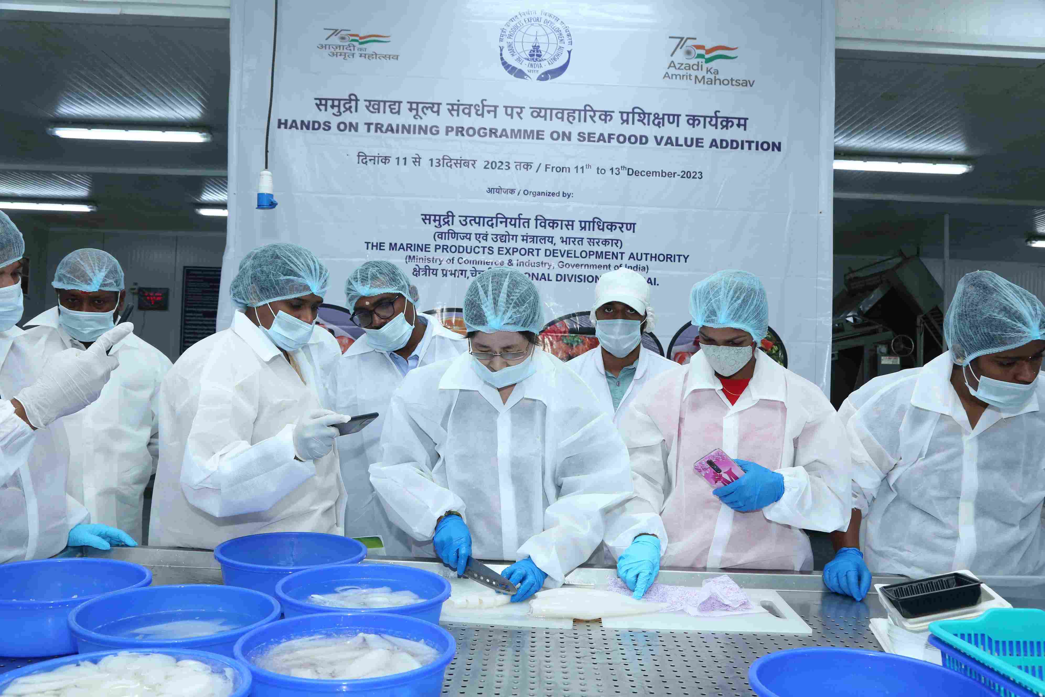 MPEDA has trained over 2,500 workers in seafood value addition through hands-on training programmes conducted by both national and international experts. Around 4,000 workers are currently engaged in the value addition sector across India.
