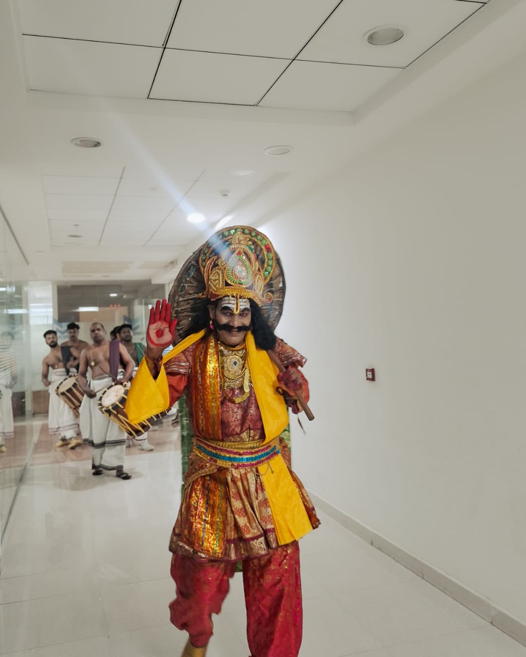 IT employees made the festival celebrations colorful with a variety of programmes such as competitions on floral carpets, Onam songs, dance programs, tug-of-war, and the arrival of the mythological Maveli.