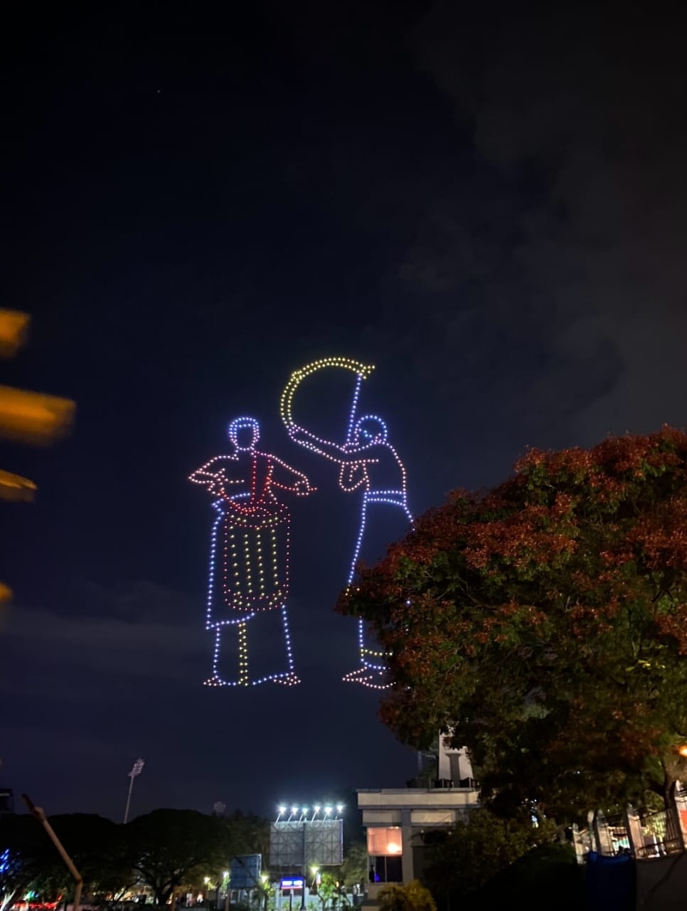സ്റ്റേഡിയത്തിന് നാല് കിലോമീറ്റര് ചുറ്റളവില് ആകാശത്ത് വിരിഞ്ഞ നയനമനോഹര കാഴ്ചകള് വിനോദസഞ്ചാരികള്ക്കും ഓണം ആഘോഷിക്കാന് നഗരത്തിലെത്തിയ ആയിരക്കണക്കിന് പൊതുജനങ്ങള്ക്കും ഒരുപോലെ ആസ്വാദ്യകരമായി. എല്ഇഡി ലൈറ്റുകളാല് പ്രത്യേകം രൂപകല്പ്പന ചെയ്ത ഡ്രോണുകളാണ് ലൈറ്റ് ഷോയുടെ ഭാഗമായത്.
