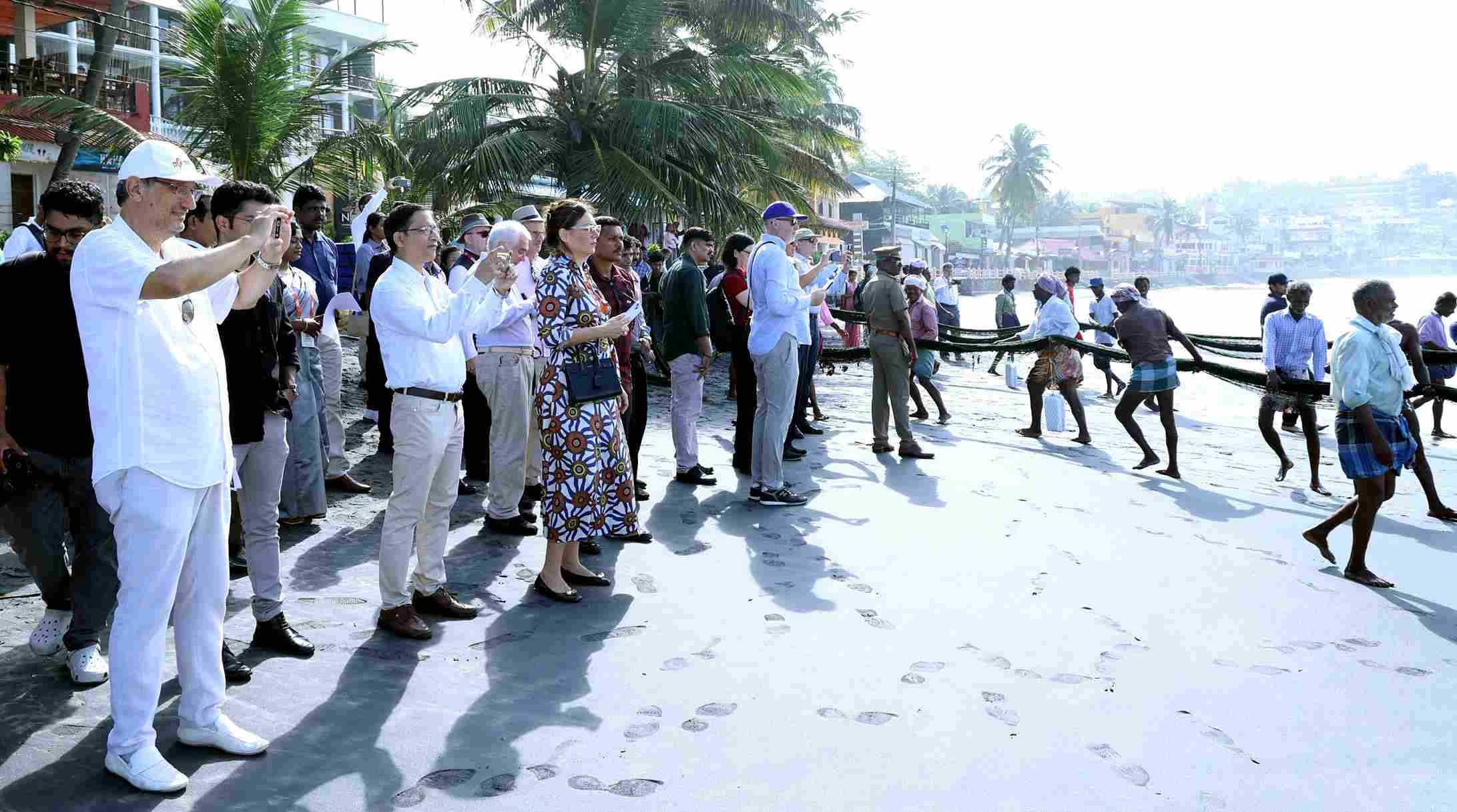 The EU group, led by Ambassador of the European Union to India Mr Hervé Delphin, started their trip by visiting the traditional fishing area at Hawa Beach to get the first-hand experience of the indigenous fishing practices of fishermen. Some of them were elated to see the catch of the fishermen at dawn after curiously witnessing their strenuous physical effort in the sea for their livelihood. A few of them also joined the fishermen in their fishing activities.