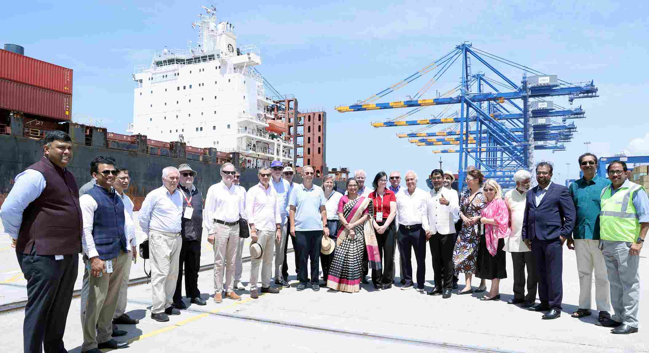 The next destination was Adani Vizhinjam Port Pvt Ltd (AVPPL) where the EU group got a ringside view of the functioning of the port through a presentation made by Mr. Pradeep Jayaraman, CEO, AVPPL, and the Port’s MD Dr. Divya S Iyer. They took a tour through the port that left a deep impression on them, especially about its facilities and unique location.