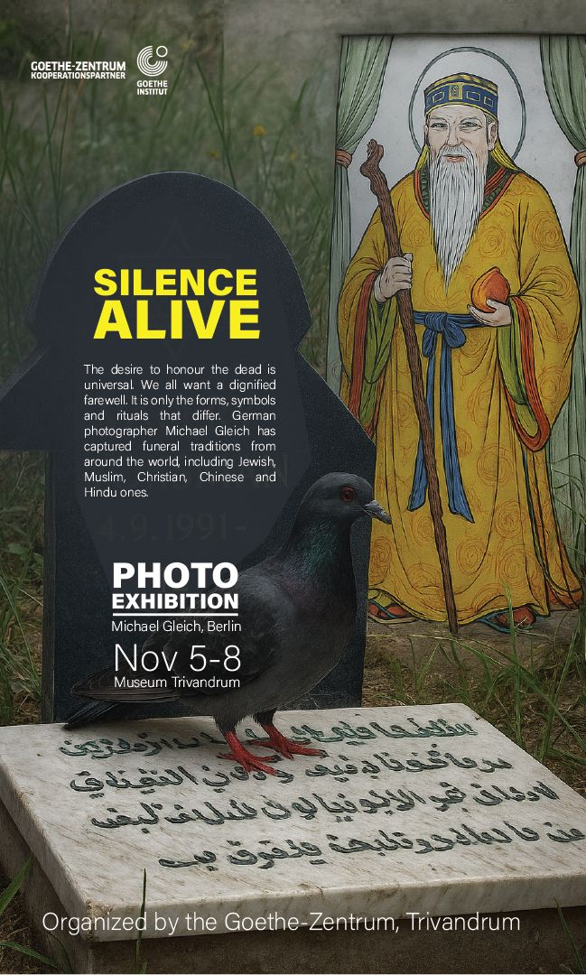 തിരുവനന്തപുരം: വിവിധ രാജ്യങ്ങളിലെ അന്ത്യയാത്രാ ചടങ്ങുകളിലെ വൈവിധ്യം വിളിച്ചോതുന്ന, പ്രശസ്ത പത്രപ്രവര്ത്തകനും ജര്മ്മന് ഫോട്ടോഗ്രാഫറുമായ മിഖായേല് ഗ്ലൈഹിന്റെ ഫോട്ടോ പ്രദര്ശനത്തിന് തലസ്ഥാനം വേദിയാകുന്നു. ജര്മ്മന് സാംസ്കാരിക കേന്ദ്രമായ ഗൊയ്ഥെ സെന്ട്രത്തിന്റെ ആഭിമുഖ്യത്തില് നവംബര് 5 മുതല് 8 വരെ മ്യൂസിയം പാര്ക്കിലാണ് പ്രദര്ശനം.