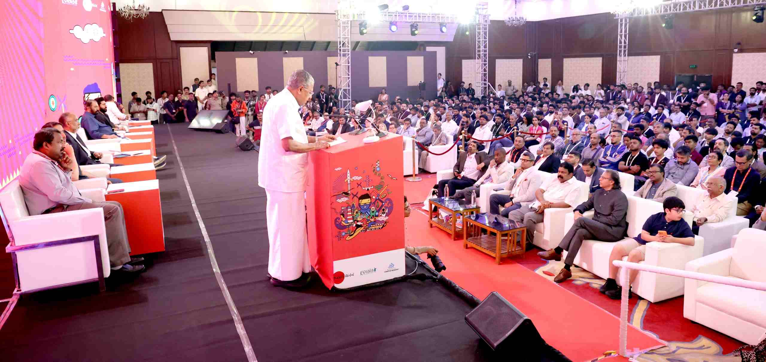സ്റ്റാര്ട്ടപ്പുകളുടെ വളര്ച്ചയുടെ അടുത്ത ഘട്ടത്തെ ശാക്തീകരിക്കുന്നതിനായി ലോകോത്തര അടിസ്ഥാന സൗകര്യങ്ങള് സൃഷ്ടിച്ചും അത്യാധുനിക സാങ്കേതിക സൗകര്യങ്ങള് ലഭ്യമാക്കിയും സ്വകാര്യ മേഖലയില് നിന്നുള്ള നിക്ഷേപം സമാഹരിച്ചുമുള്ള എമര്ജിങ് ടെക്നോളജി ഹബ്ബായി കേരളം മാറുകയാണ്. ഒപ്റ്റിക്കല് ഫൈബര് വഴി പൂര്ണ്ണമായും ബന്ധിപ്പിച്ചിരിക്കുന്ന സംസ്ഥാനത്തിന് ഉയര്ന്ന നിലവാരമുള്ള പ്രൊഫഷണലുകളുടെ സാന്നിധ്യം ഉറപ്പാക്കാനും സംസ്ഥാനത്തുടനീളമുള്ള വിജ്ഞാന വ്യവസായങ്ങളെ വികേന്ദ്രീകരിക്കാനും തുല്യമായ വളര്ച്ച ഉറപ്പാക്കാനും സാധിച്ചിട്ടുണ്ടെന്നും മുഖ്യമന്ത്രി കൂട്ടിച്ചേര്ത്തു.