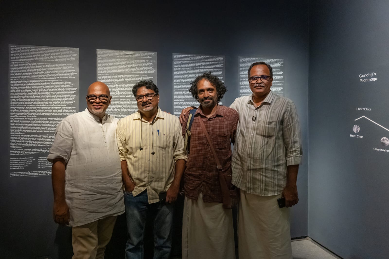 യുദ്ധങ്ങളും വംശഹത്യകളും വർഗീയ കലാപങ്ങളും കൊണ്ട് ലോകം കലുഷിതമായിരിക്കുമ്പോൾ ഗാന്ധിയൻ ചിന്തകൾക്ക് ഏറെ പ്രസക്തിയുണ്ടെന്ന് ഈ പ്രദർശനം ഓർമ്മിപ്പിക്കുന്നു. ഗാന്ധിജിയുടെ ജീവിതത്തിലെ അവസാനത്തെ രണ്ട് വർഷങ്ങളാണ് ഇതിന്റെ പ്രധാന പ്രമേയം. അദ്ദേഹത്തിന്റെ ലാളിത്യവും ദർശനങ്ങളുടെ ആഴവും വ്യക്തമാക്കുന്ന ഫോട്ടോഗ്രാഫുകൾ, വീഡിയോകൾ, കവിതകൾ, ഇൻസ്റ്റാളേഷനുകൾ എന്നിവ ഇവിടെ പ്രദർശിപ്പിച്ചിട്ടുണ്ട്. ഗാന്ധി വധത്തിന് പിന്നിലുള്ളവരുടെ വിചാരണാ ദൃശ്യങ്ങളും തോക്കുകളുടെ മാതൃകകളും ഉൾപ്പെടുത്തിയ വലിയ സ്ക്രീനുകൾ ചരിത്രത്തിലെ കറുത്ത ദിനങ്ങളെ ഓർമ്മിപ്പിക്കുന്നു. കലാപങ്ങൾ നടന്നിടങ്ങളിലൂടെയും ഗാന്ധിജി സമാധാന സന്ദേശവുമായി സഞ്ചരിച്ച പാതകളിലൂടെയും നടത്തിയ ഗവേഷണത്തിന്റെ ഫലമായാണ് പ്രദർശനം തയ്യാറാക്കിയതെന്ന് മുരളി ചീരോത്ത് പറഞ്ഞു.
