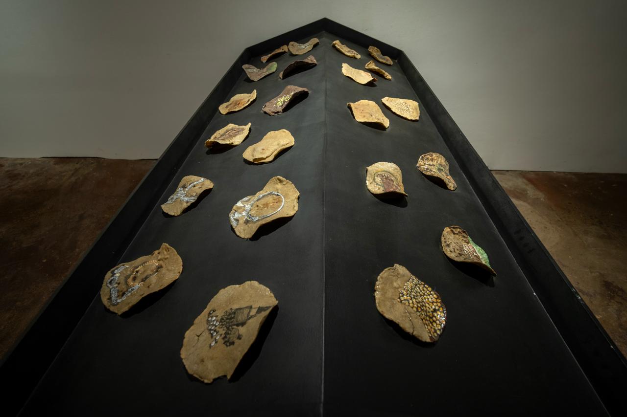 കൊച്ചി: സ്റ്റുഡന്റ്സ് ബിനാലെയുടെ ഭാഗമായി കൊച്ചിയിൽ സംഘടിപ്പിച്ചിട്ടുള്ള 'ടെൻഷൻ ഓഫ് ബിലോങ്ങിംസ്' (Tension of Belongings) എന്ന കലാസൃഷ്ടിയില് എട്ടുമാസത്തോളമായി കേടാകാതെ നിലനില്ക്കുന്ന റൊട്ടികളുടെ കഷണങ്ങളുണ്ട്. ഇന്ത്യയുടെ വിവിധ ഭാഗങ്ങളിൽ നിന്ന് ആന്ധ്രാപ്രദേശിലേക്ക് കുടിയേറിയ ഒരു സമൂഹത്തിന്റെ അതിജീവനത്തെയാണ് ഈ പ്രദര്ശനത്തിലൂടെ കാണിക്കുന്നത്.