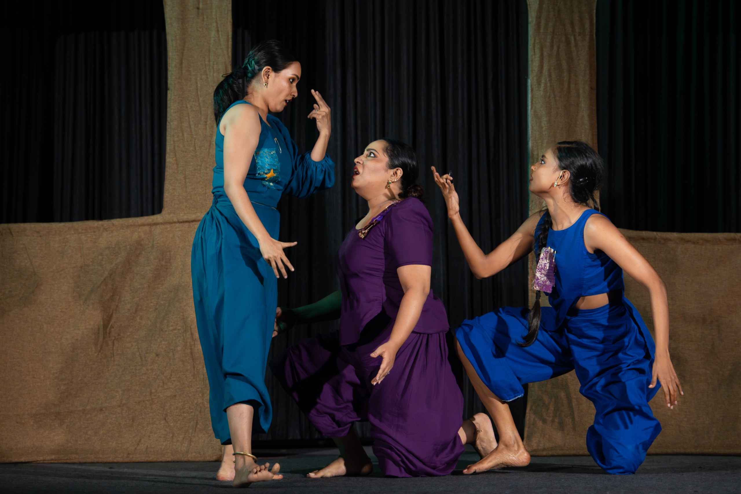 “Our choreography is a natural dialogue between our different backgrounds in contemporary dance, Mohiniyattam, and Bharatanatyam,” said Anjali, one of the three dancers, speaking after the performance.