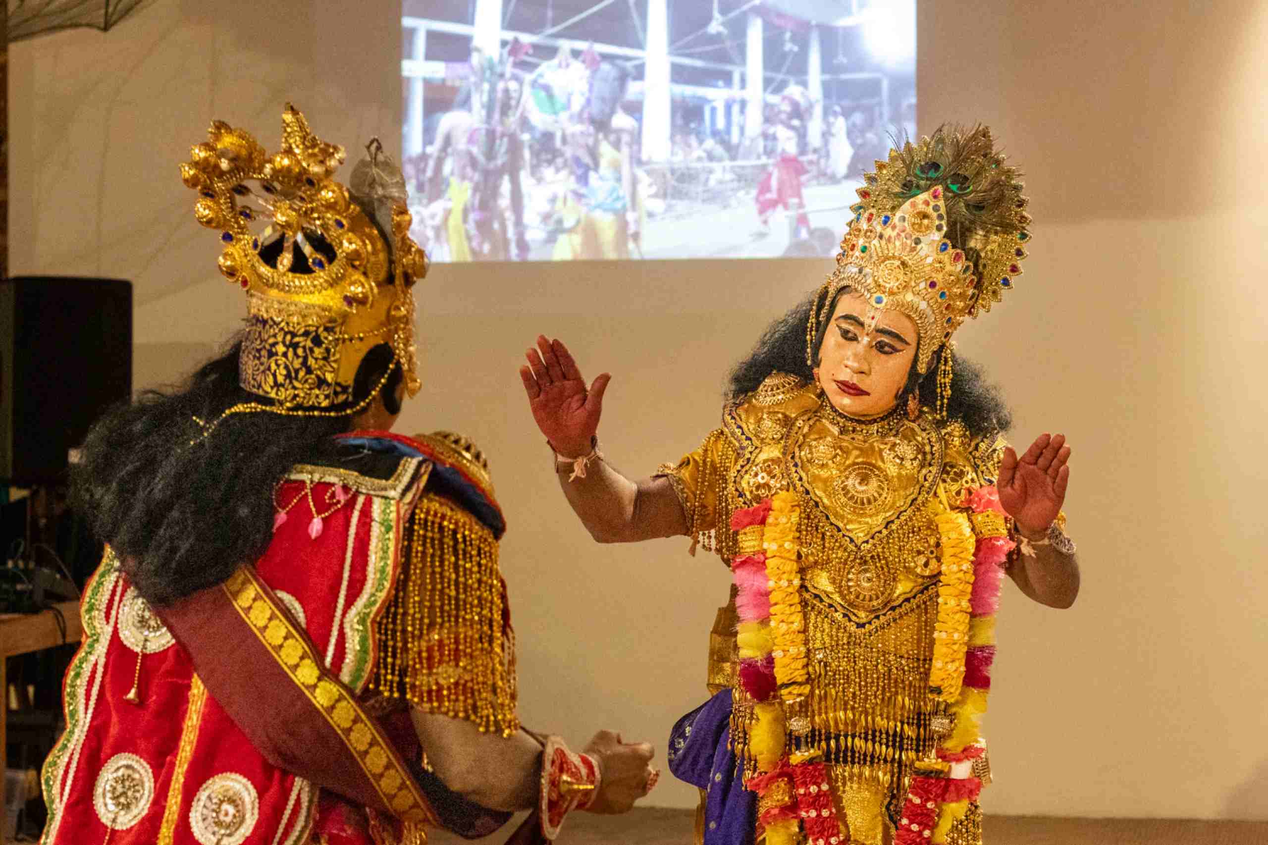 മഹാഭാരത യുദ്ധത്തിലെ കർണ്ണവധമാണ് ആസ്പിൻവാളിലെ വേദിയിൽ അവതരിപ്പിക്കപ്പെട്ടത്. അസമിലെ നമ്ഘറുകളിലും (പ്രാർത്ഥനാലയങ്ങൾ) സത്രങ്ങളിലും (മഠങ്ങൾ) മാത്രം ഒതുങ്ങിനിന്നിരുന്ന ഈ അനുഷ്ഠാന കലാരൂപം, ബിനാലെ പോലൊരു അന്താരാഷ്ട്ര കലാവേദിയുടെ ഭാഗമായത് ഏറെ കൗതുകകരമായി. 'അങ്കിയ നാട്ട്' (Ankiya Nat) എന്നറിയപ്പെടുന്ന ഏകാംഗ നാടക രൂപത്തിലാണ് ഭാവനയുടെ നിർമ്മിതി. കഥ പറയുന്ന 'സൂത്രധാർ' ആണ് ഇതിലെ കേന്ദ്ര കഥാപാത്രം. ശ്ലോകങ്ങൾ ചൊല്ലിയും രംഗങ്ങൾ പരിചയപ്പെടുത്തിയും ധര്മ്മ സന്ദേശങ്ങൾ പ്രേക്ഷകരിലേക്ക് എത്തിക്കുന്ന സൂത്രധാർ, ഭാവനയുടെ പ്രധാനകഥാപാത്രമാണ്.