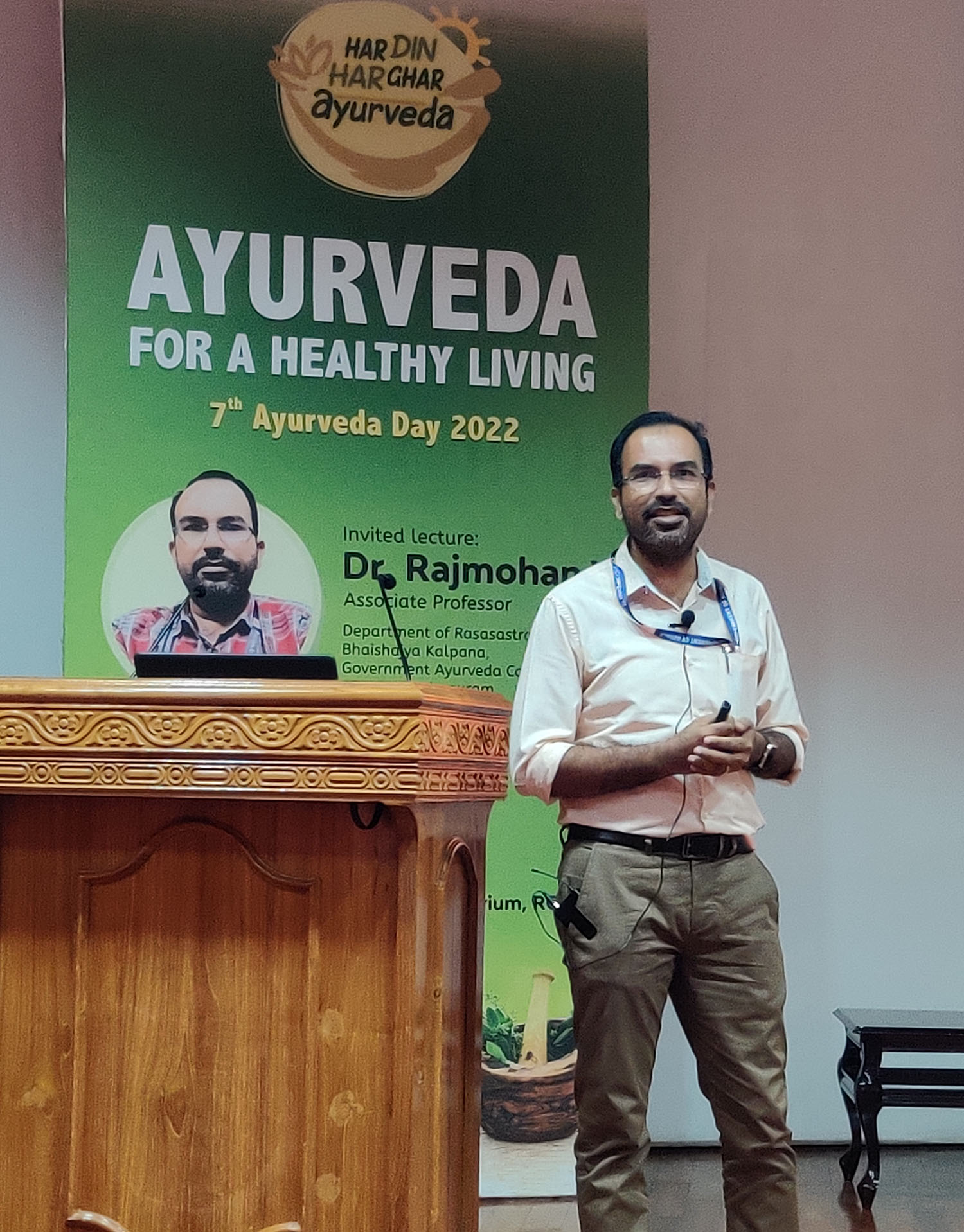 തിരുവനന്തപുരം: ആയുര്വേദ ഗവേഷണങ്ങള് പ്രാഥമിക ഘട്ടത്തിലാണെന്നും ഈ മേഖലയുടെ സമ്പന്നമായ പാരമ്പര്യവും അതുല്യമായ നേട്ടങ്ങളും പ്രയോജനപ്പെടുത്തുന്നതിന് കൂടുതല് ഗവേഷണ പ്രവര്ത്തനങ്ങള് ആവശ്യമാണെന്നും തിരുവനന്തപുരം ഗവ.ആയുര്വേദ കോളേജ് അസോസിയേറ്റ് പ്രൊഫസര് ഡോ.രാജ്മോഹന് വി. പറഞ്ഞു. ആയുര്വേദ ദിനാചരണത്തോടനുബന്ധിച്ച് രാജീവ് ഗാന്ധി സെന്റര് ബയോ ടെക്നോളജി (ആര്ജിസിബി) 'ആയുര്വേദം: ആരോഗ്യകരമായ ജീവിതത്തിന്' എന്ന വിഷയത്തില് സംഘടിപ്പിച്ച പ്രഭാഷണം നയിക്കുകയായിരുന്നു അദ്ദേഹം.