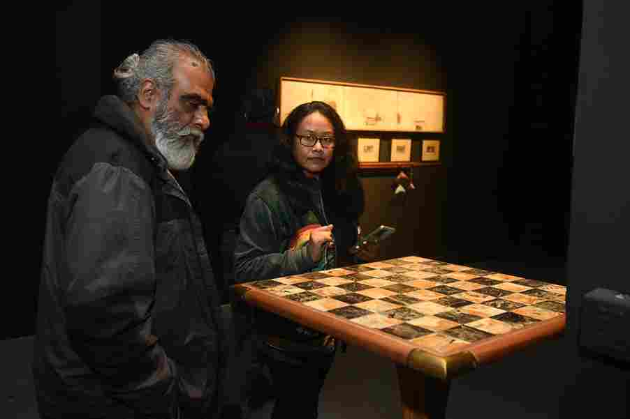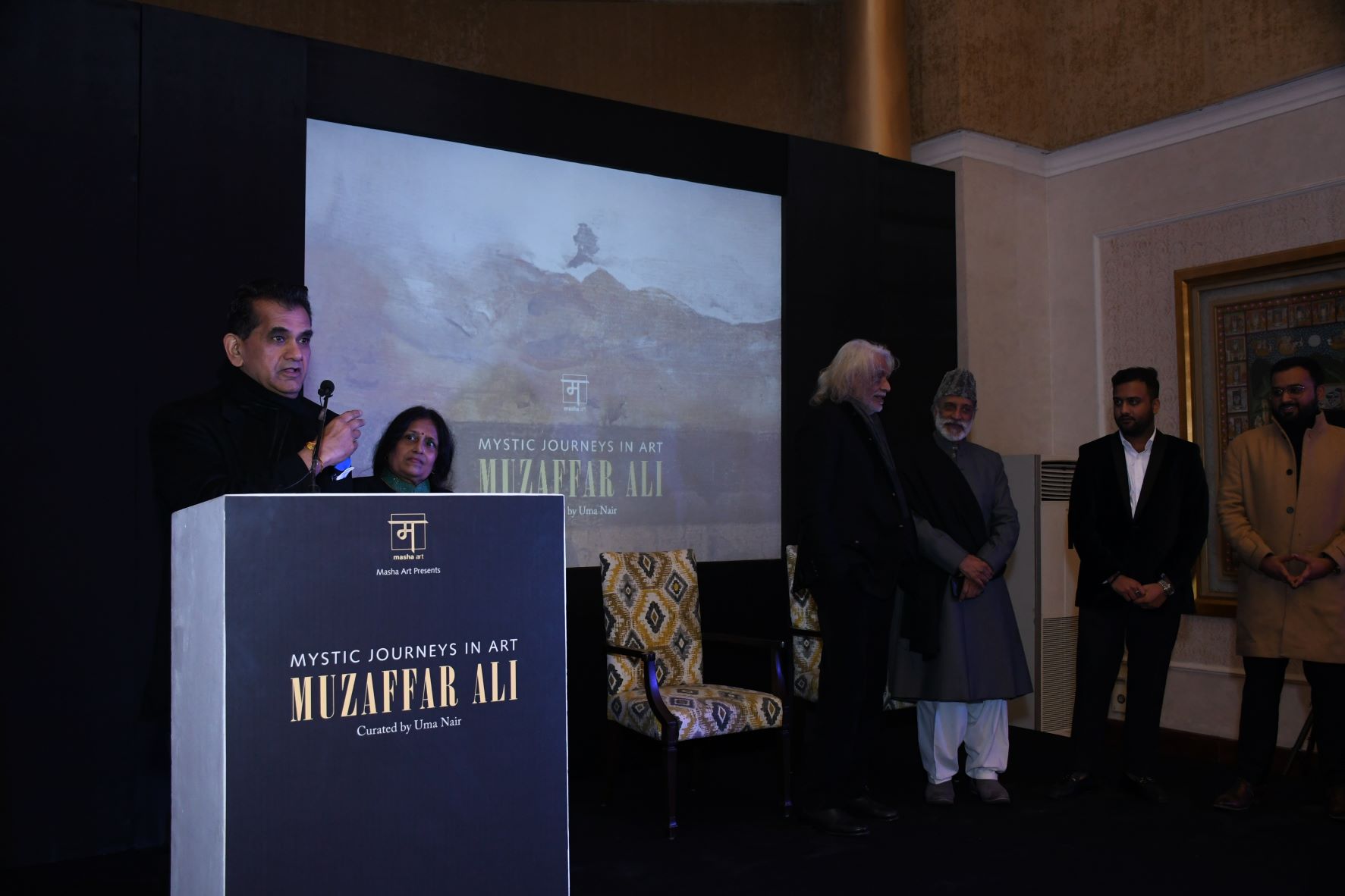 വിശിഷ്ടവ്യക്തികള്ക്ക് മുസാഫറും ഉമാനായരും കലാസൃഷ്ടികള് വിവരിച്ച് നല്കി. ശിവാനി വര്മ്മയുടെ കഥക് നൃത്തവും ഒരുക്കിയിരുന്നു. മുസാഫര് അലിയുടെ സര്ഗ്ഗാത്മകമായ ബുദ്ധിസാമര്ഥ്യവും ക്യൂറേറ്റര് ഉമാനായരുടെ സൗന്ദര്യബോധത്തിലെ ആഴത്തിലുള്ള അറിവും ഈ പ്രദര്ശനത്തെ വേറിട്ടതാക്കിയെന്ന് അമിതാബ് കാന്ത് ചൂണ്ടിക്കാട്ടി. ഗവേഷണത്തിന്റെയും സൗന്ദര്യബോധത്തിന്റെയും ചേരുവയാണ് ഈ പ്രദര്ശനമെന്ന് അമന്നാഥ് പറഞ്ഞു.